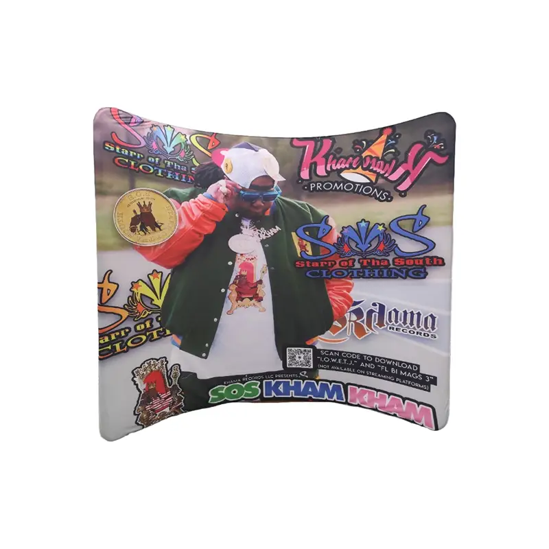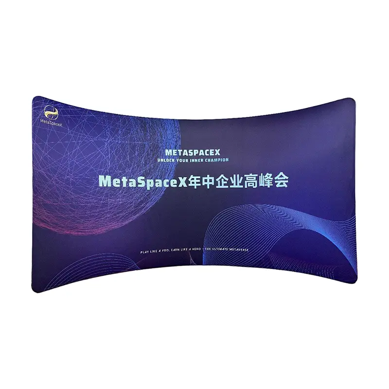 Το πλαίσιο σκηνικού καμπύλης είναι κατασκευασμένο από ισχυρό αλλά ελαφρύ πλαίσιο από κράμα αλουμινίου και εμπριμέ ελαστικό ύφασμα υψηλής ευκρίνειας με εξάχνωση, αυτή η βάση με καμπυλωτό τόξο προσφέρει ανθεκτικότητα και κορυφαία γραφικά. Το ύφασμα διαθέτει φωτεινά, ανθεκτικά στις γρατσουνιές χρώματα που ζωντανεύουν τα περίπλοκα σχέδια με μεγάλη διαύγεια. Η καμπύλη δομή του δημιουργεί μια απρόσκοπτη, χωρίς ζάρες οθόνη και η διάταξη χωρίς εργαλεία σάς επιτρέπει να δημιουργήσετε ένα επαγγελματικό σκηνικό μέσα σε λίγα λεπτά.